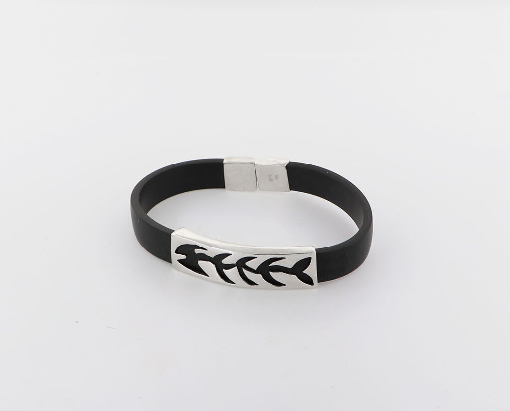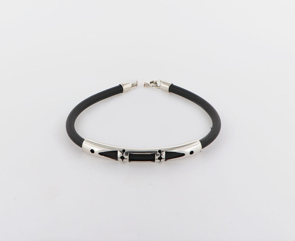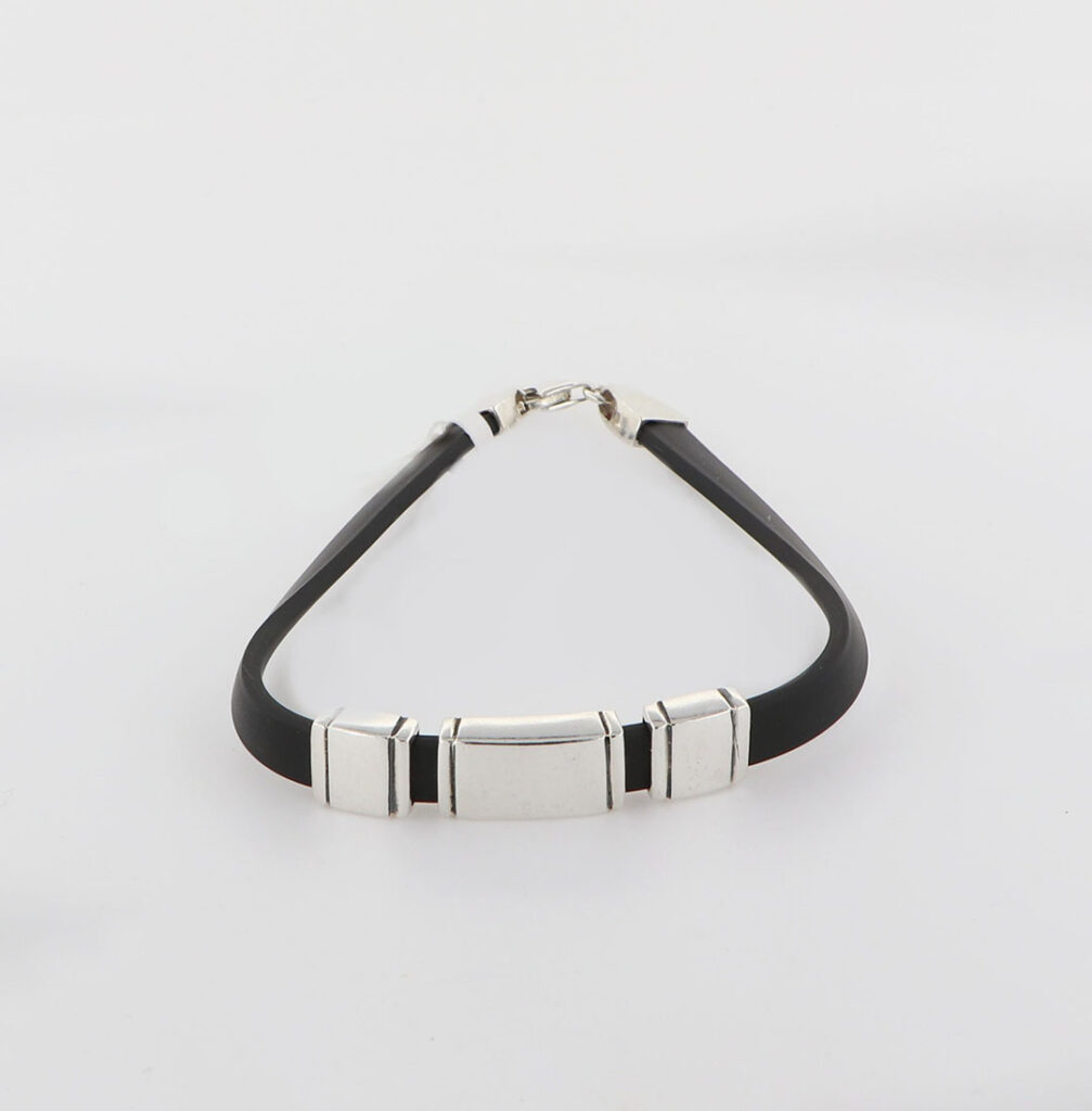 Βραχιόλι Μαίανδρος διάτρητο από ασήμι 925.Πλακέ καουτσούκ.Με φάρδος 11mm.Σε διάφορα μήκη.