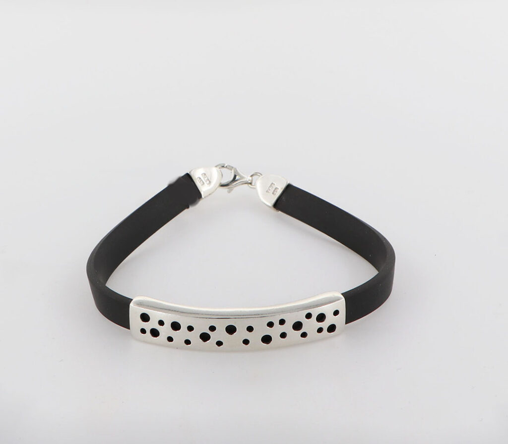Βραχιόλι μασίφ σκέτο 3 μοτίφ με ασήμι 925.Φάρδος 7mm.Με πλακέ καουτσούκ.Σε διάφορα μήκη.