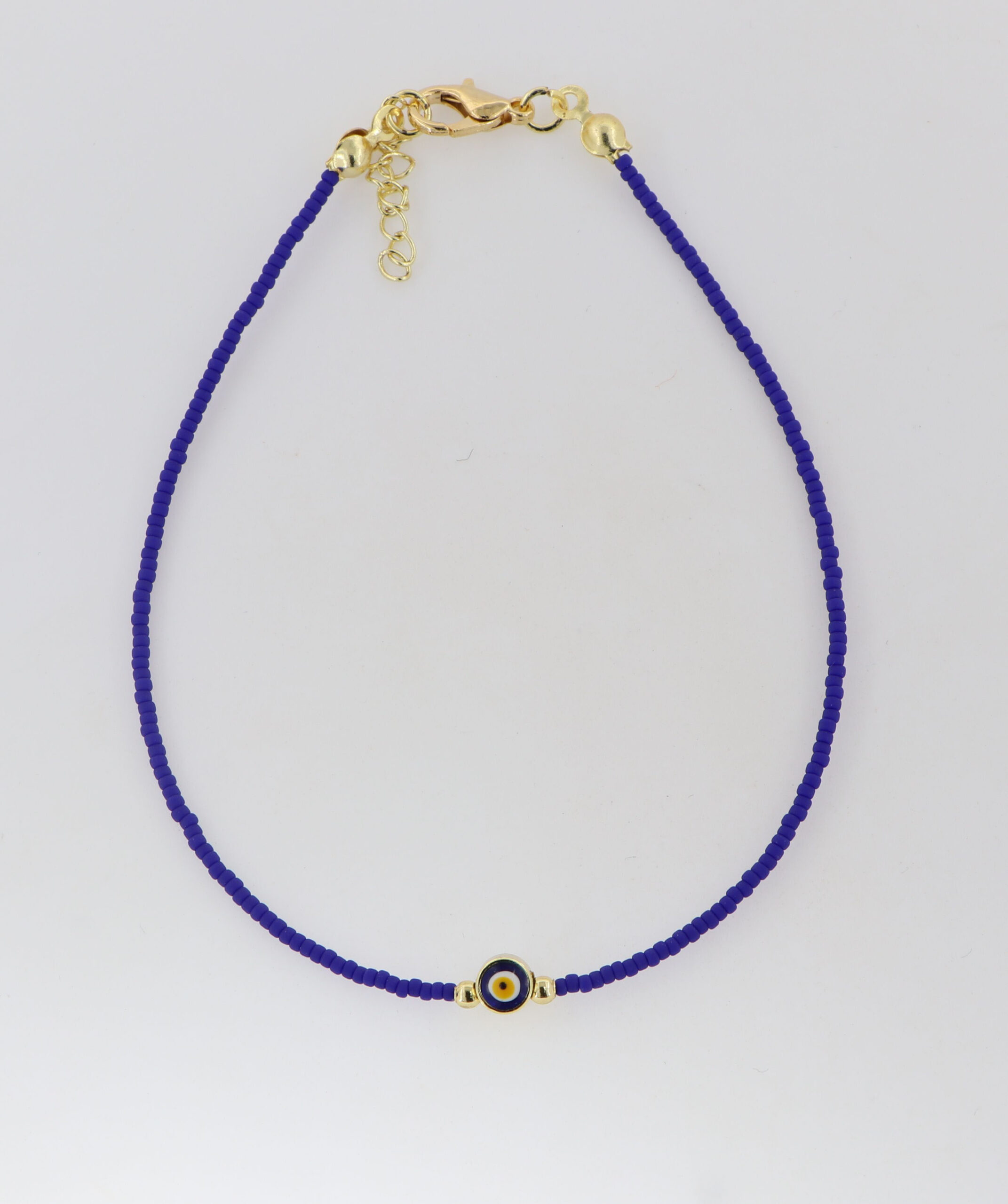 Βραχιόλια ποδιού με μπλε πέτρες, ματάκι & επιχρυσωμένες λεπτομέρειες.Επεκτεινόμενη αλυσίδα από 23-27cm.